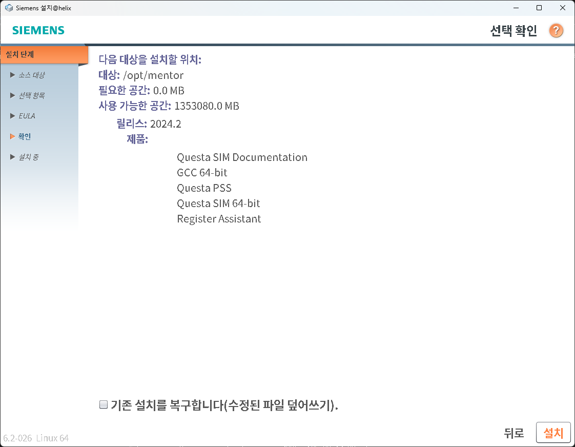 - questsim 설치 (/opt/mentor/questasim)